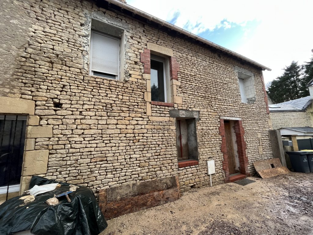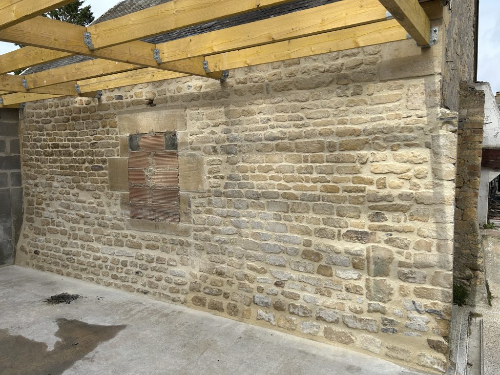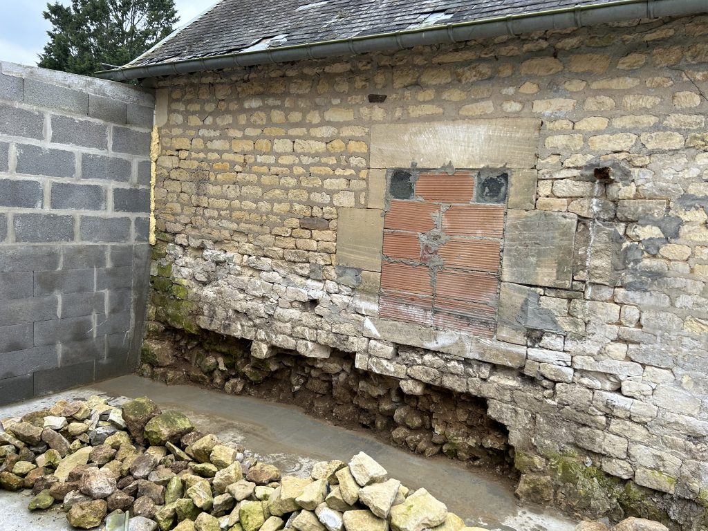 Piquage des joints et nettoyage d’une façade en pierre avant travaux de jointoiement